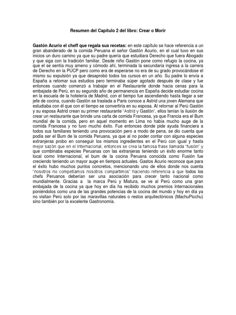 Resumen Del Capitulo 2 Del Libro Crear O Morir Peru