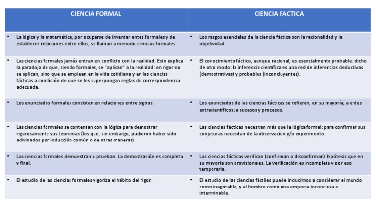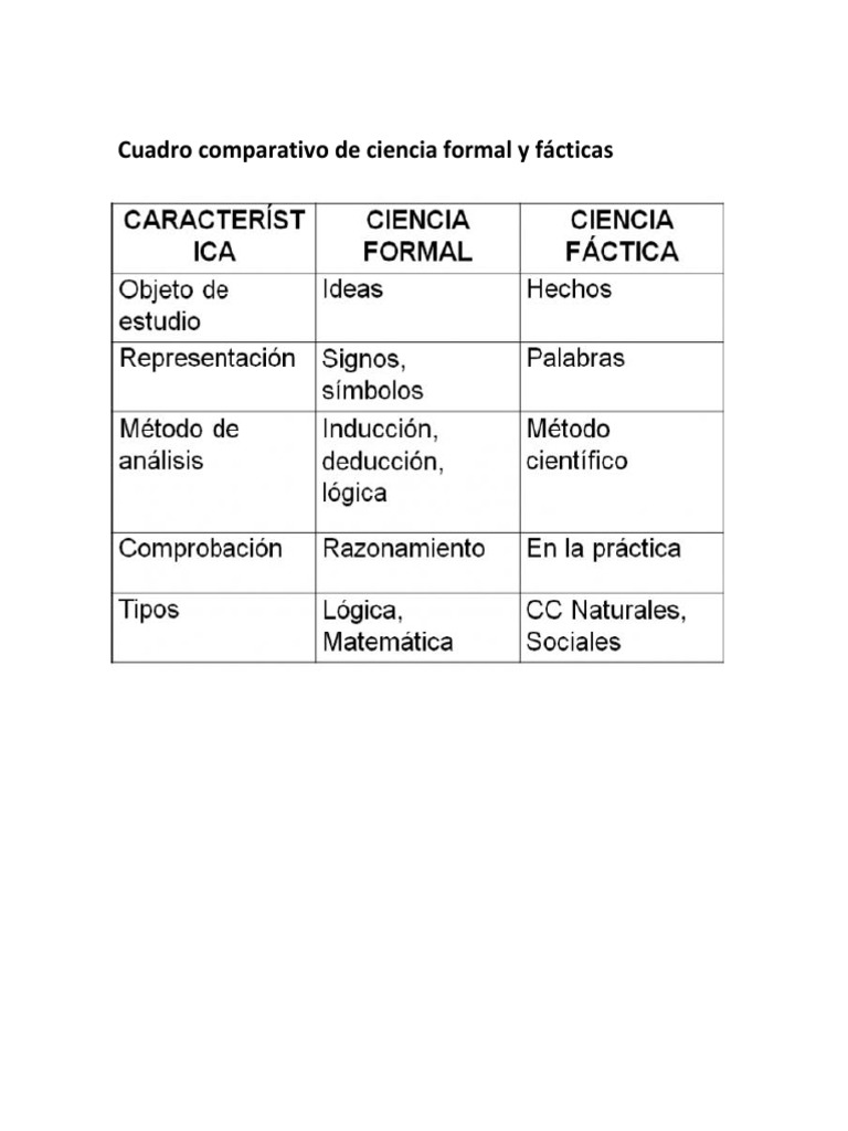 Cuadro Comparativo De Ciencia Formal Y Facticas Pdf