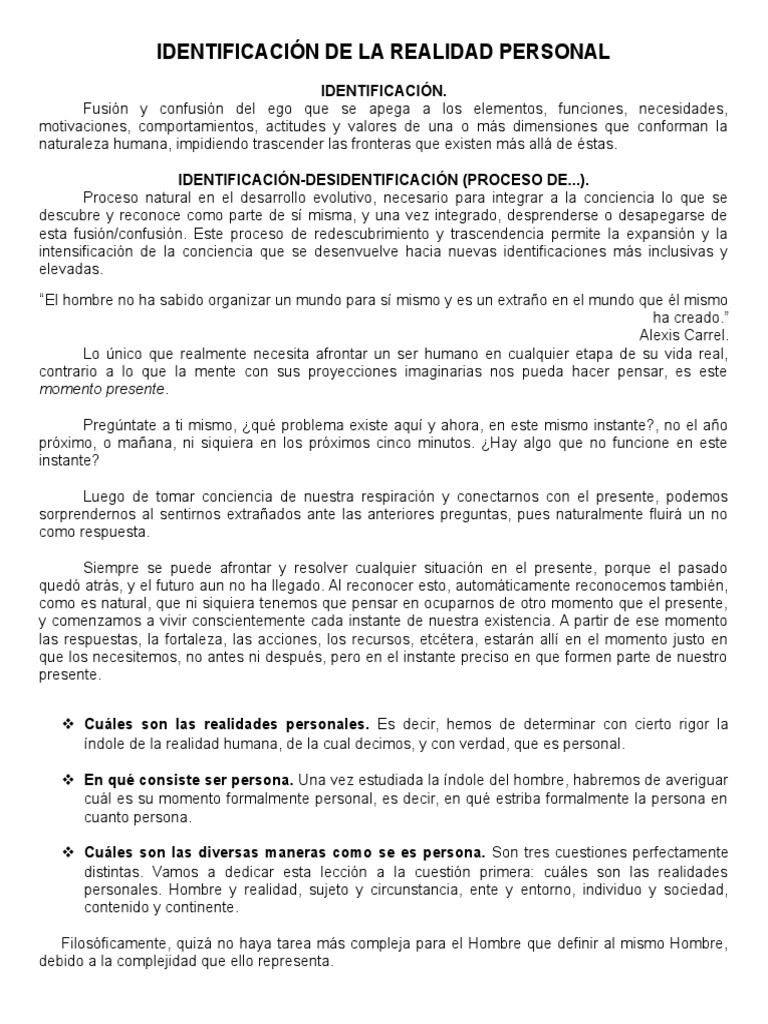 Identificacion De La Realidad Personal Pdf Realidad Homo Sapiens