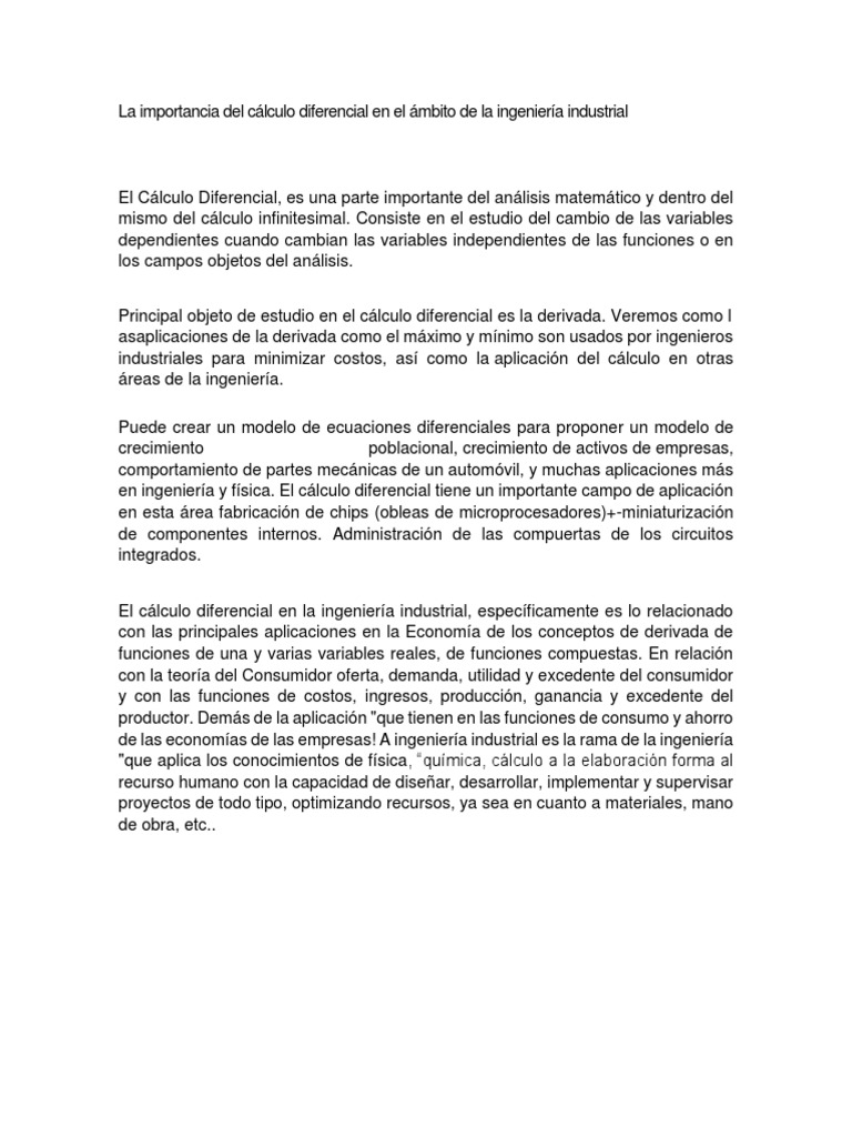 La Importancia Del Calculo Diferencial En El Ambito De La Ingenieria Industrial Pdf Calculo Ingenieria Industrial