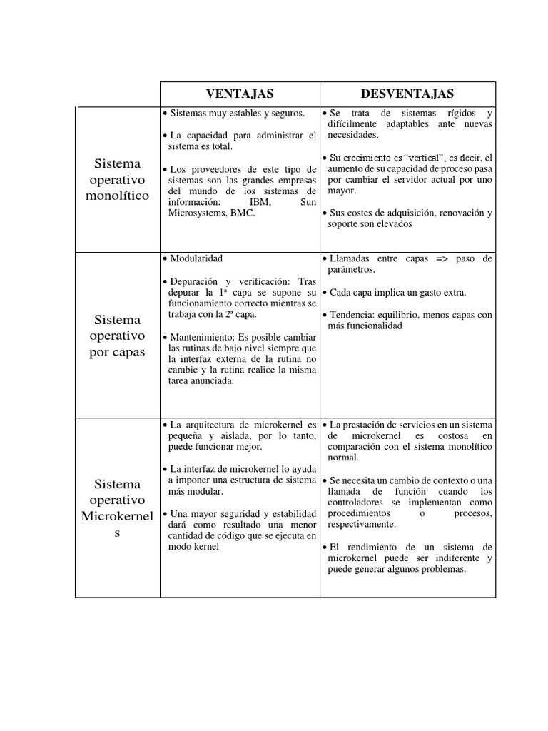 Sistemas Operativos Ventajas Y Desventajas