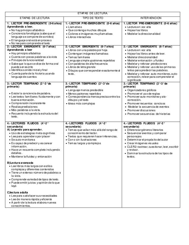 Etapas Del Proceso De La Lectura Tema 1 Boruto