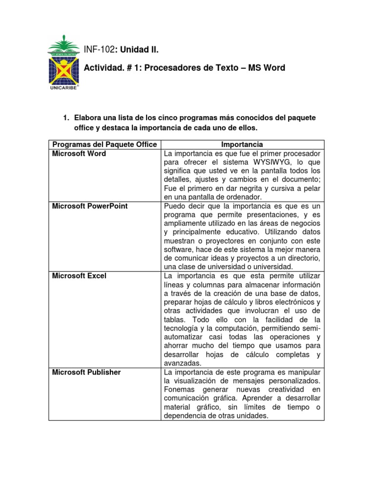 Actividad I Pdf Microsoft Word Microsoft