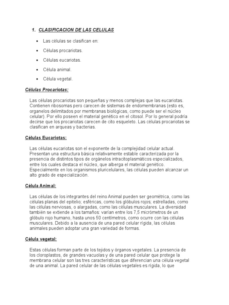 Clasificacion De Las Celulas Citoplasma Biologia Celular