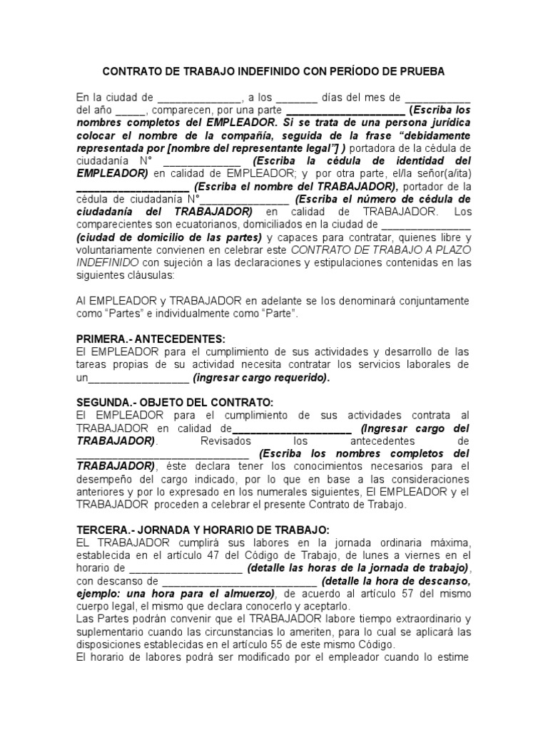 Contrato De Trabajo Indefinido Con Periodo De Prueba Pdf Salario Derecho Laboral