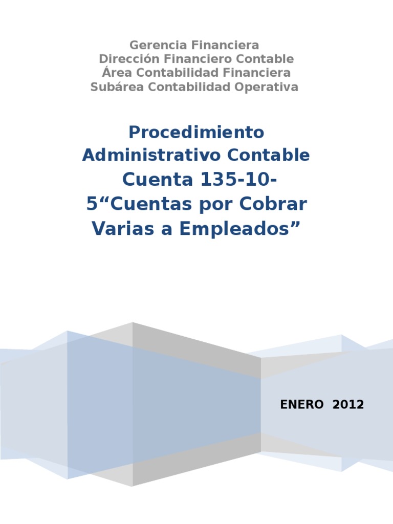 Cuenta 135-10-5 Cuentas por cobrar a empleados de la Institucin. Por cobrar que por diversos aspectos los empleados. Translate Cuentas por cobrar empleados.