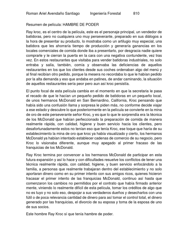 Ensayo Pelicula Hambre De Poder Resumenes Carlosesrom97