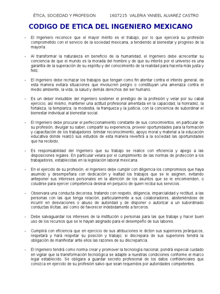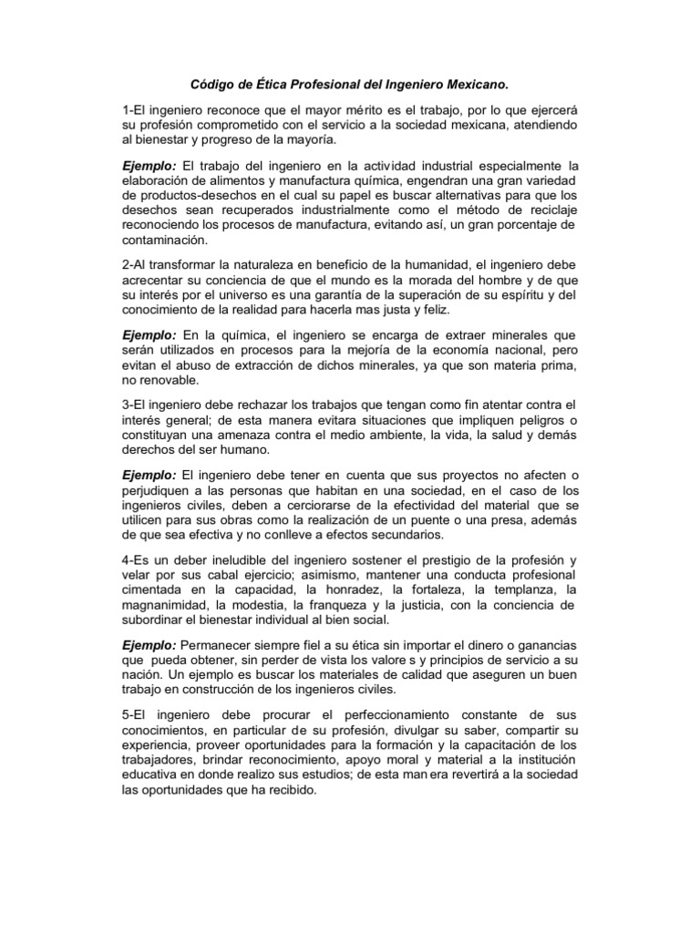 Codigo De Etica Del Ingeniero Mexicano Derecho Laboral Ingenieria