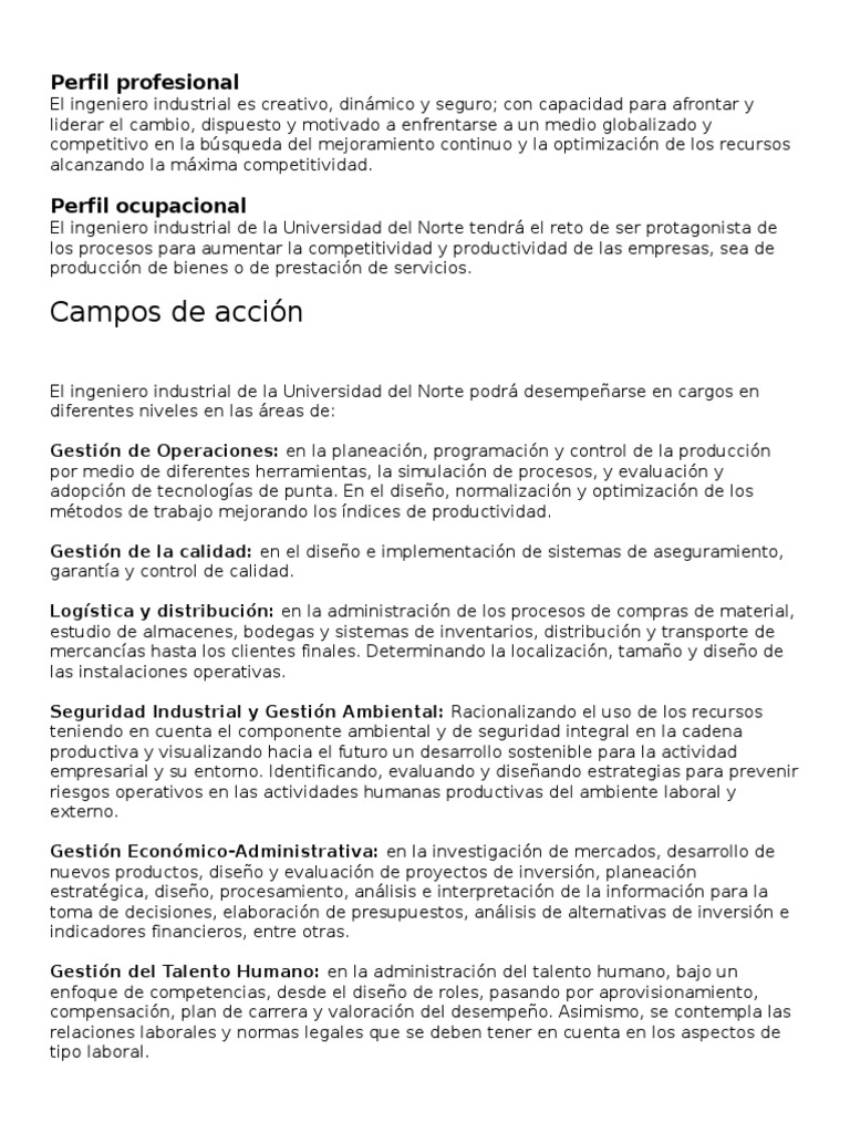 Perfil Profesional Ingeniero Industrial Pdf Ingenieria Industrial Planificacion