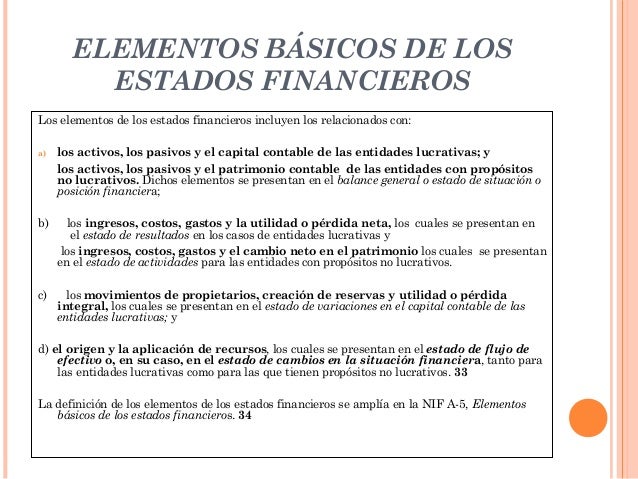 Elementos basicos de los estados financieros nif a5. Los cambios importantes que surgen con la emisión de la NIF A-5 son. Elementos Básicos de los Estados Financieros - NIF A5. IN5 a Se definen los siguientes elementos de los estados financieros.