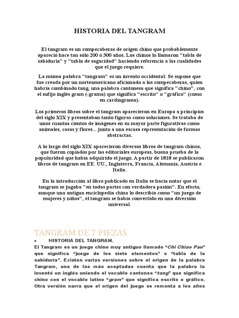 Historia Del Tangram Pdf Ensenanza De Matematica Science