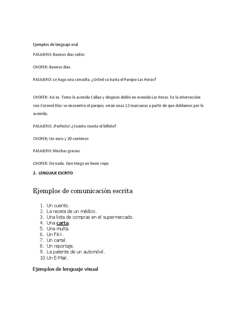 Ejemplos De Lenguaje Oral