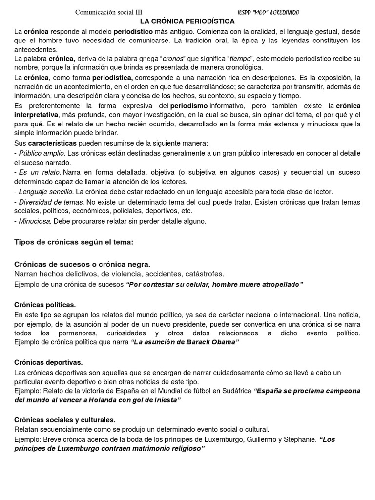 Cronica Periodistica Pdf Periodismo Informacion
