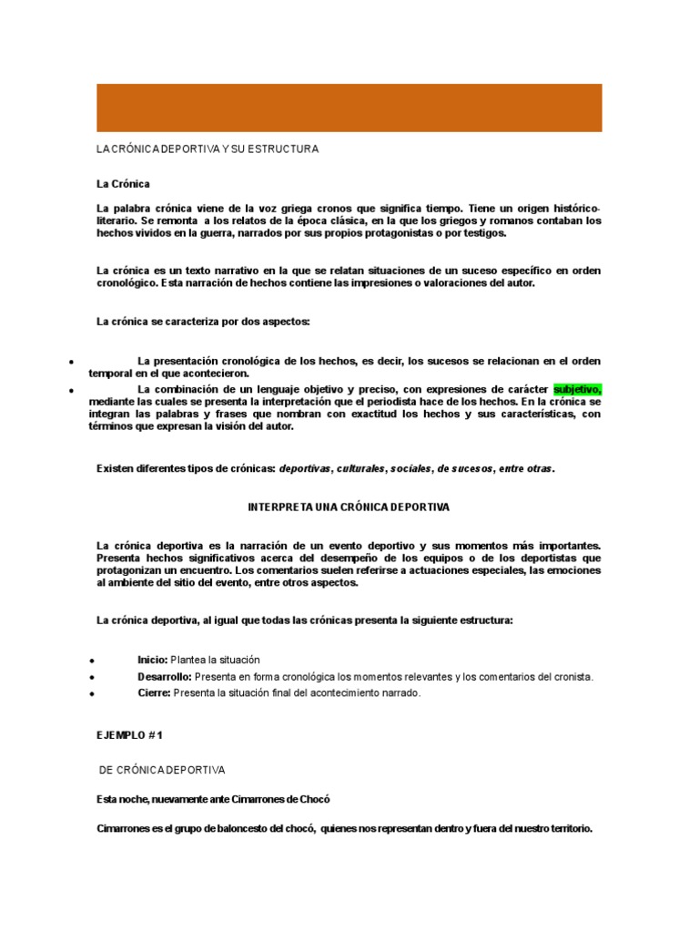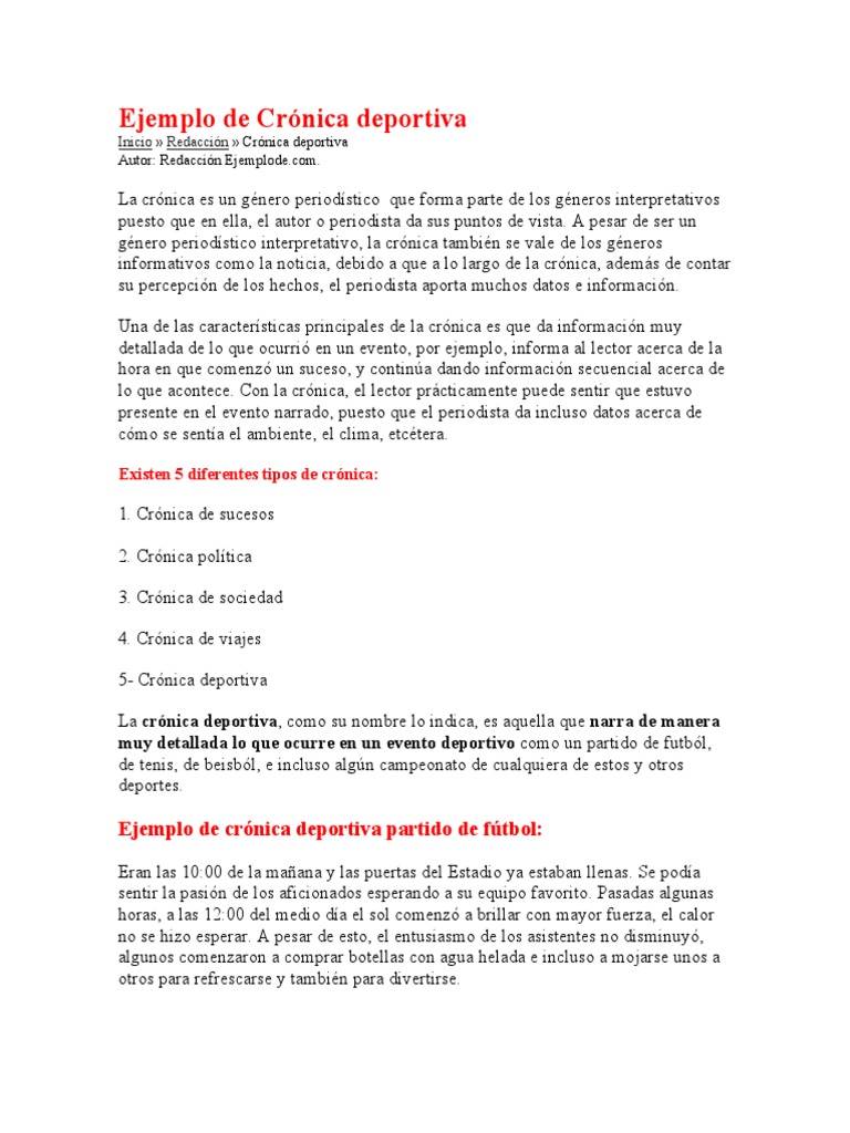 Cronica Deportiva Concepto Caracteristicas Estructura Ejemplo