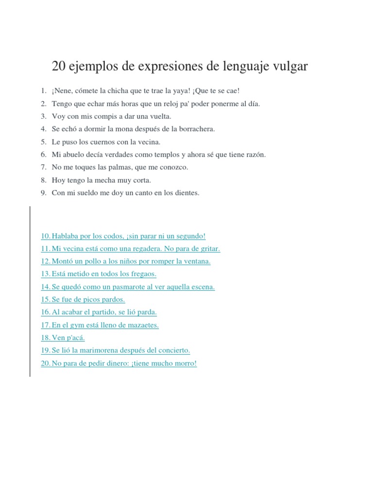 20 Ejemplos De Expresiones De Lenguaje Vulgar Pdf