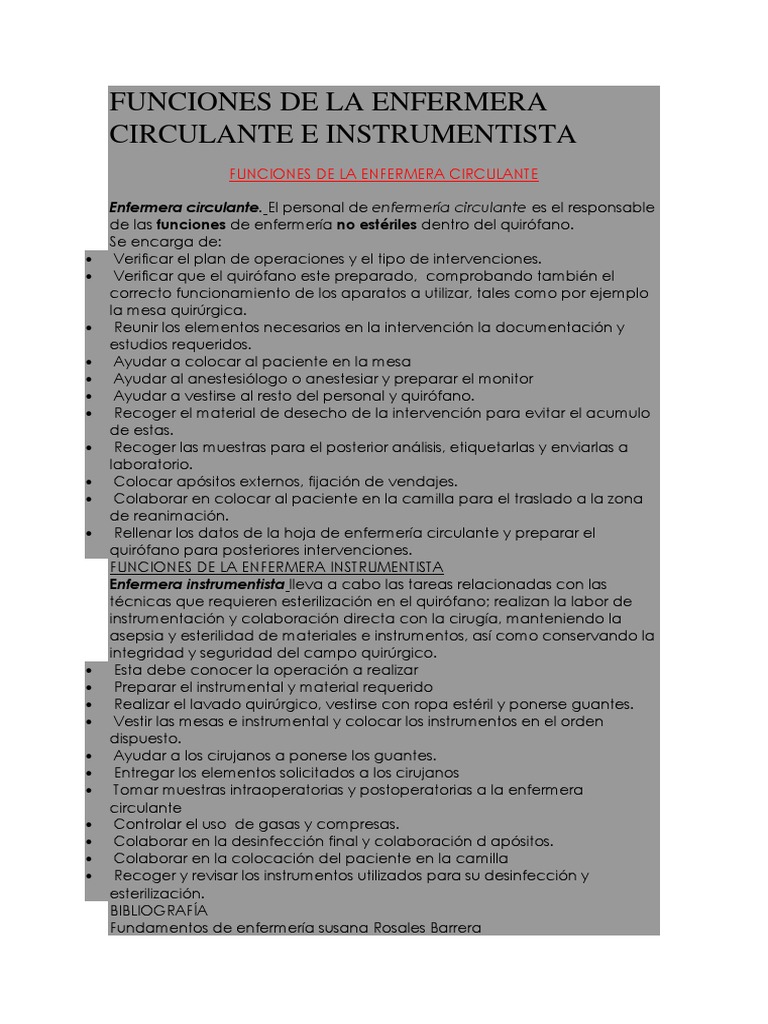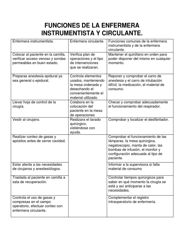 Funciones De La Enfermera Circulante E Instrumentista Pdf Cirugia Bioetica