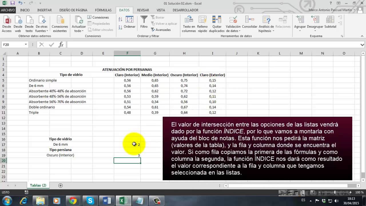Encontrar El Valor De Interseccion Entre Fila Y Columna Mediante Listas Desplegables Youtube