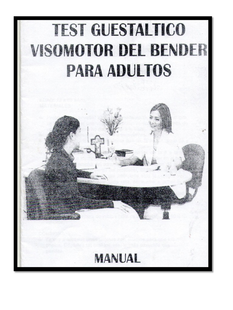 Manual de bender para adultos. Existe 4 tipos a saber. Une notice parmi 10 millions PDF. PROTOCOLO DE BENDER PARA ADULTOS Aspectos a tener en cuenta en la evaluación I Disposición A.