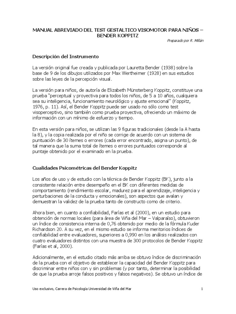 Manual Test De Bender Bip Pdf Curva Rotacion