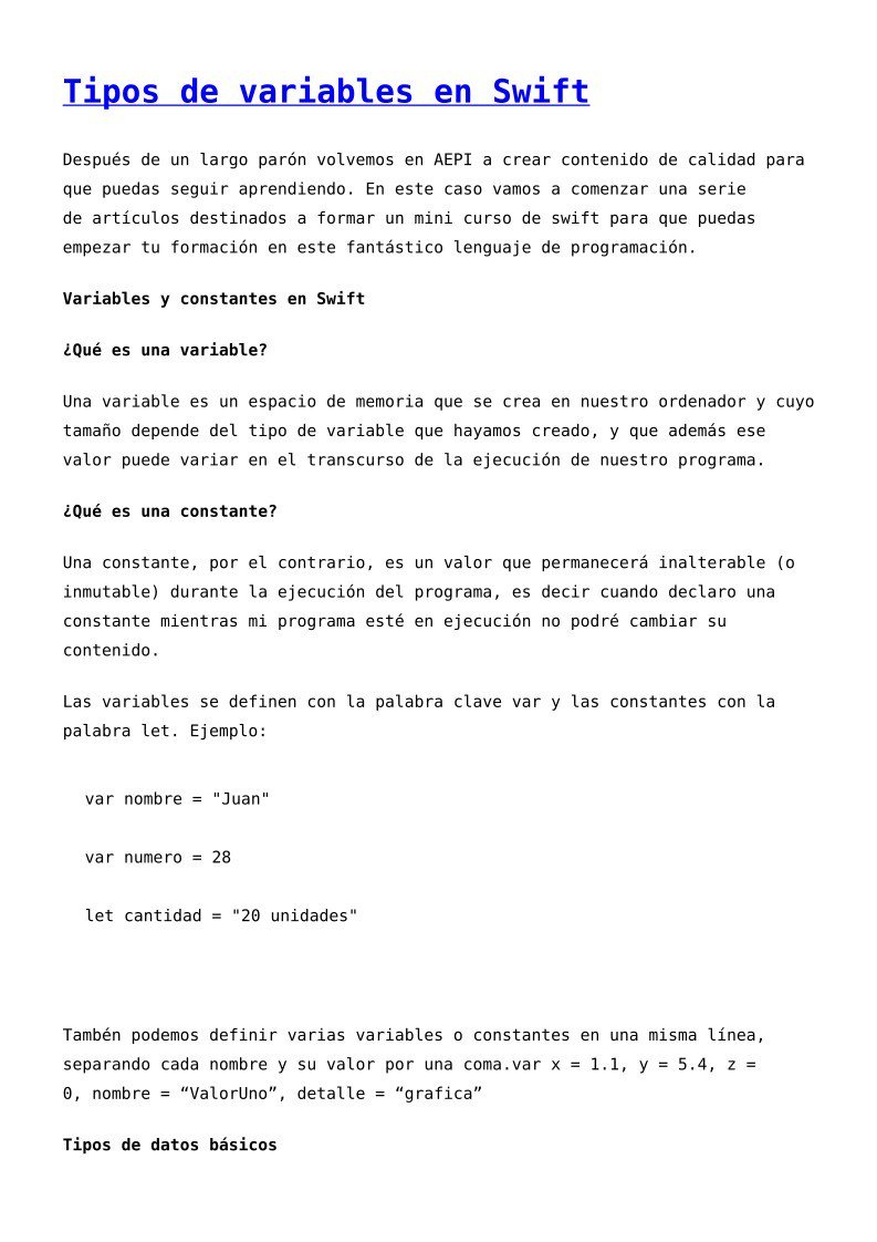 Lawebdelprogramador On Twitter Pdf De Programacion Tipos De Variables En Swift Https T Co Qhdjr7j6h8