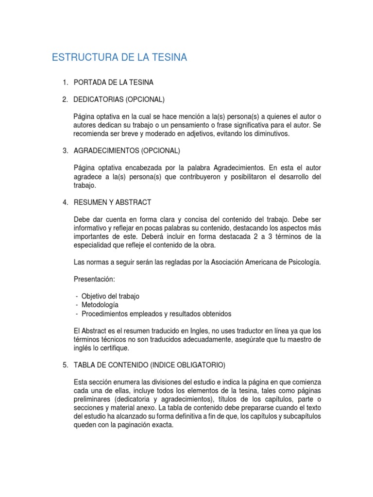Estructura De La Tesina Pdf Sumario Abstracto Science