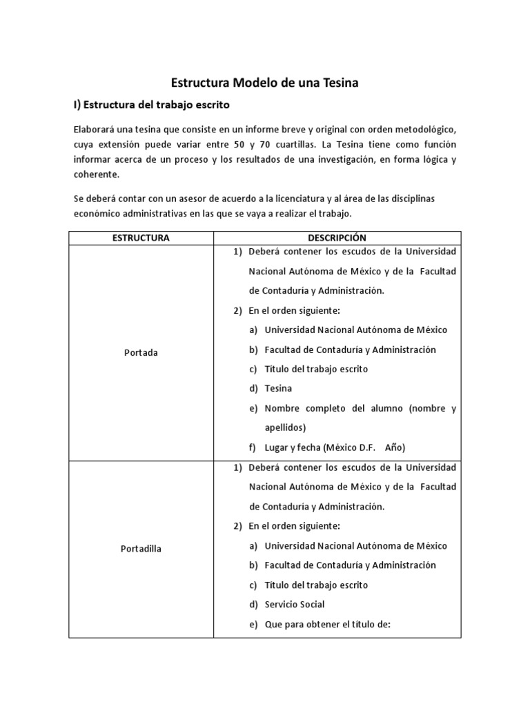 Estructura Y Tipos De Tesina Pdf Document