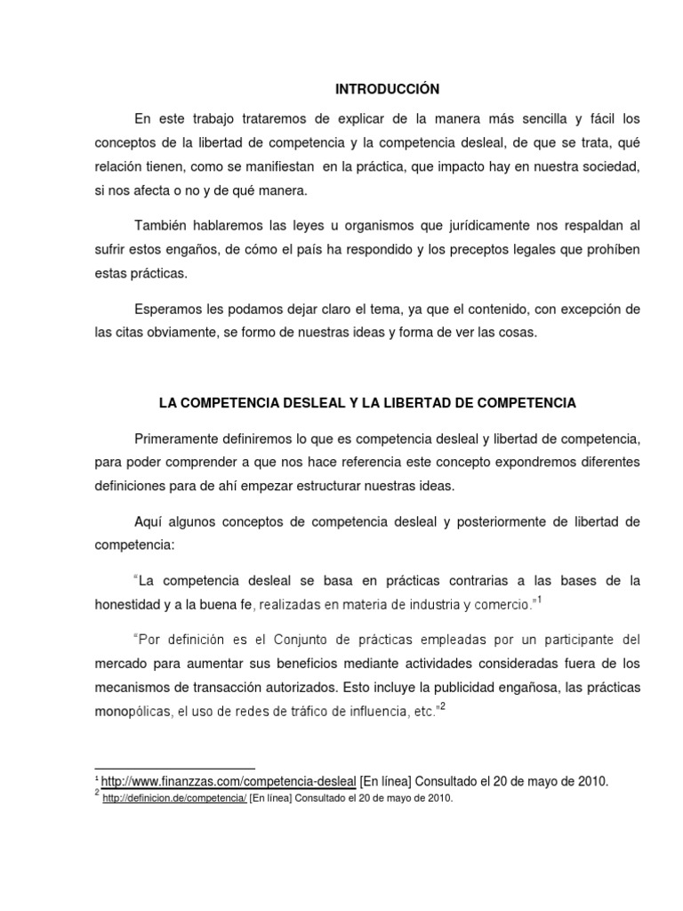La Competencia Desleal Y La Libertad De Competencia Pdf Monopolio Mercado Economia
