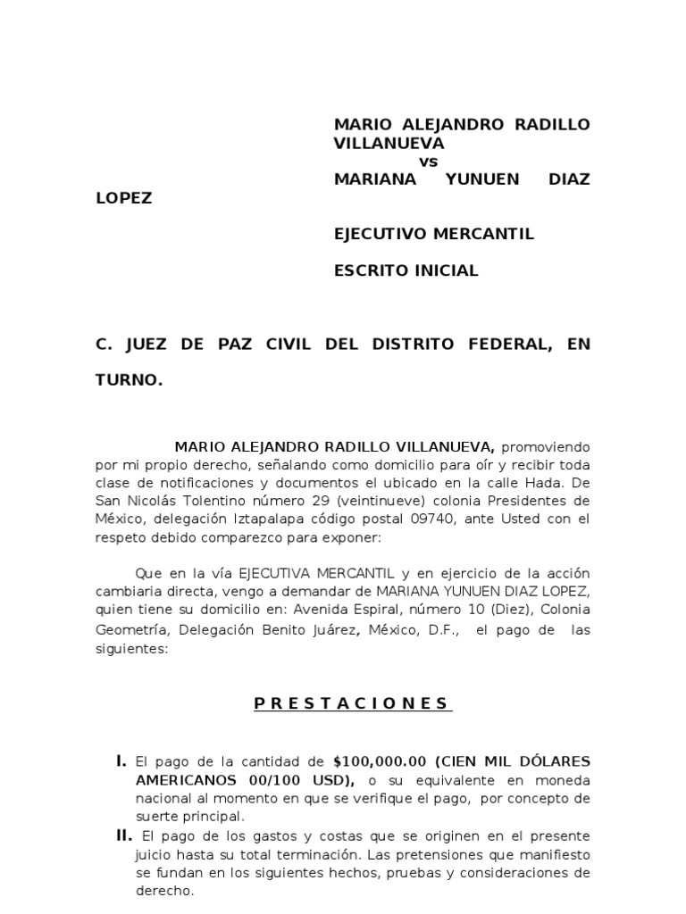 Demanda Ejecutivo Mercantil Escrito Inicial Pagare Ciudad De Mexico