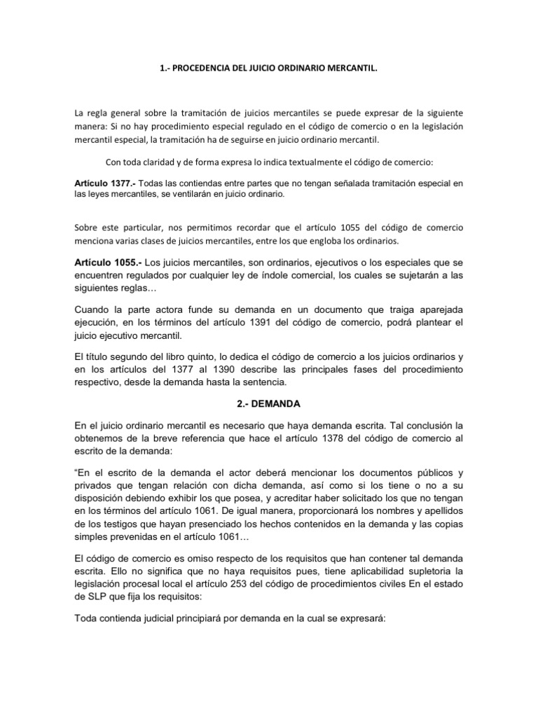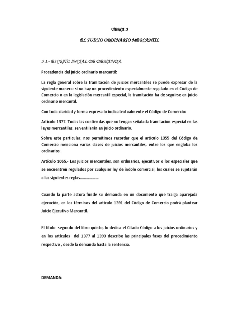 Juicio Ordinario Mercantil Pdf Demanda Judicial Ley Procesal