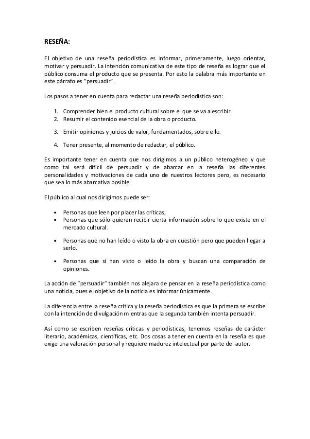 5 Caracteristicas De La Resena Mas Importantes Resumen