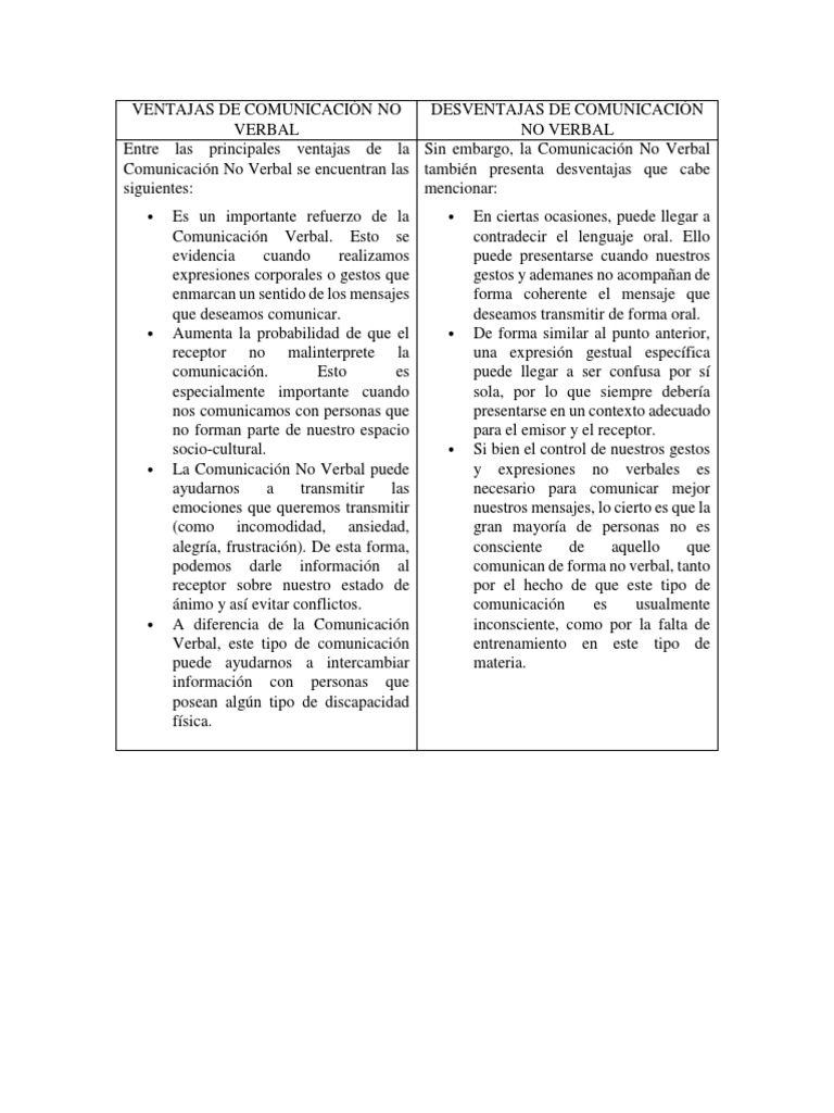 Ventajas Y Desventajas De Comunicacion No Verbal Y Escrita Pdf Comunicacion No Verbal Comunicacion