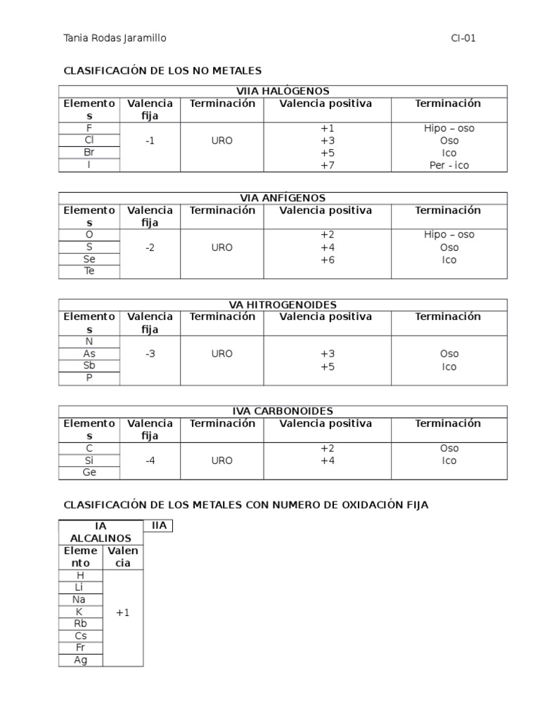 Clasificacion Y Estado De Oxidacion De Los No Metales