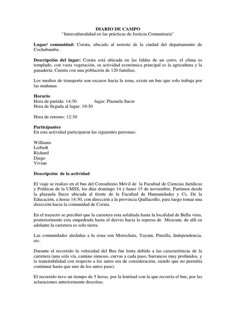 Diario De Campo Ejemplo Ejercicios De Antropologia Docsity