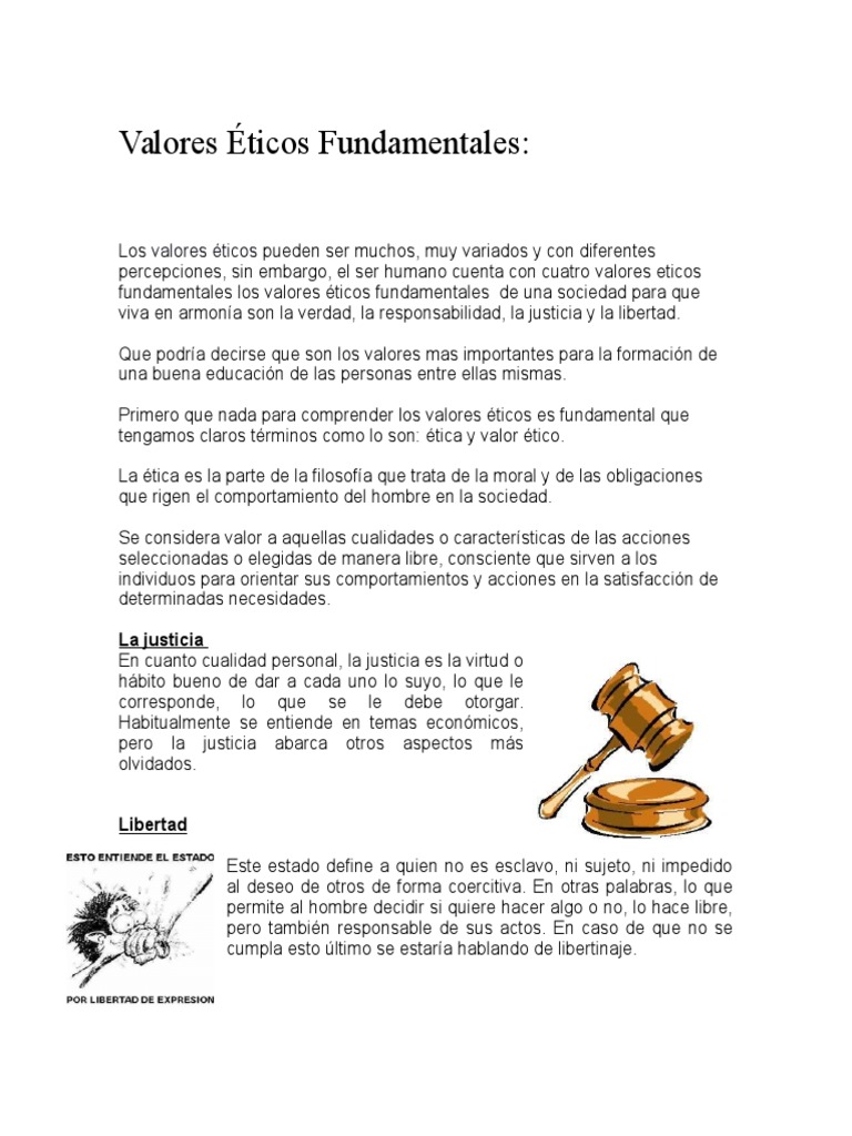 Valores Eticos Fundamentales Libertad Justicia Responsabilidad Y Verdad