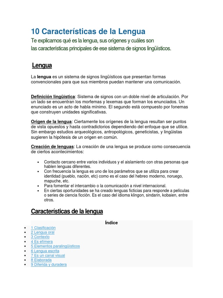 10 Caracteristicas De La Lengua Pdf Linguistica Comunicacion