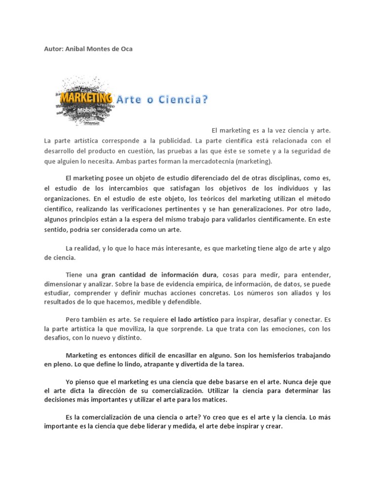 La mercadotecnia es una ciencia. 2 418 palabras Publicado.